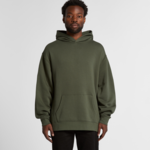 Pullover hood, drop shoulder, kangaroo pocket, lined hood, no drawcord, sleeve cuff ribbing